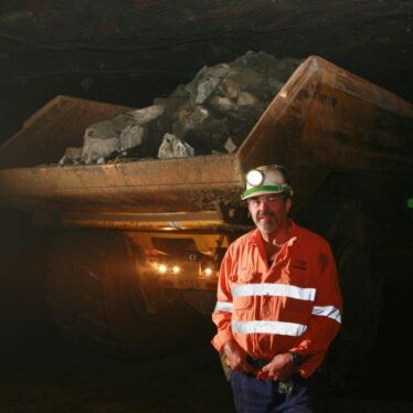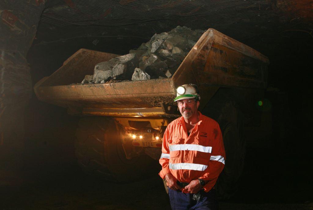 A KCGM Staff member with an Underground Haul Truck